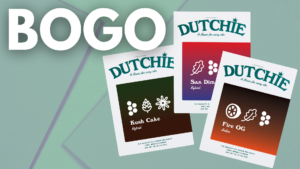 Includes Dutchie, Willie’s Reserve, AND Hana products. Second item must be of equal or lesser value. BOGO applies to single item.